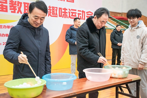 12月22日,由校工会主办,体育部承办的“庆元旦,迎新春”第四届教职工趣味运动会在校体育馆中心球馆举行。理事长、党委书记封超年,校长吴中江,党委常务副书记、副校长周更生,副校长仇存进,工会主席杨业琴,体育部主任薛雨平,工会副主席肖苏,体育部副主任饶日忠,工会委员、工会组长、全体运动员、裁判员等出席了开幕式。开幕式由体育部权国睿老师主持。