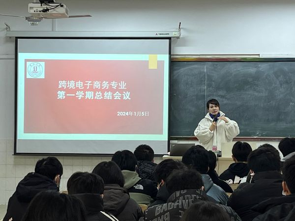1月5日上午9点,外国语学院在东山校区教学楼H102教室召开“跨境电子商务专业第一学期期末总结会”。外国语学院院长郑玉琪、跨境电商系主任秦臻、辅导员刘盆美以及跨境电商专业全体学生参加了此次会议,会议由秦臻主持。