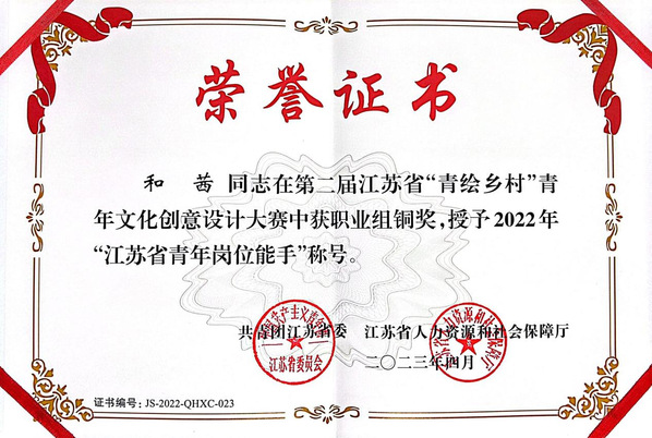 近日,江苏省共青团和江苏省人力资源和社会保障厅联合开展“江苏省青年岗位能手”评选活动。经过严格的评审和考核,beat365建筑学院教师和茜凭借其第二届“青绘乡村”青年文化创意设计大赛中的优秀成绩以及平时在教育教学、科研创新等方面的突出成绩,荣获“江苏省青年岗位能手”称号。