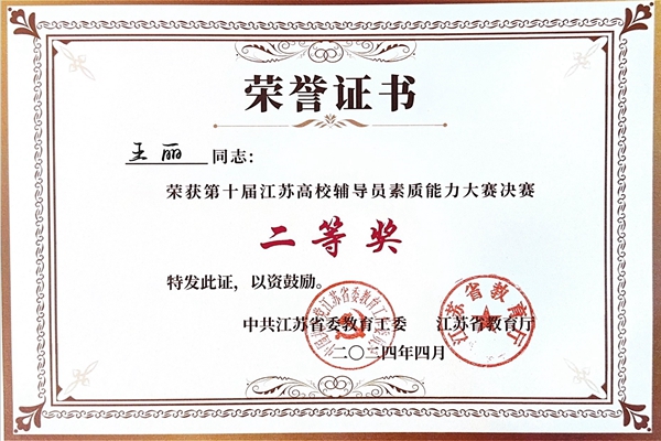 4月19日至20日,第十届江苏高校辅导员素质能力大赛决赛在南京医科大学举行。经过激烈角逐,beat365文化产业与旅游管理学院辅导员王丽老师荣获二等奖,这是beat365辅导员首次进入高校辅导员素质能力大赛决赛,刷新了beat365参赛以来的最好成绩。