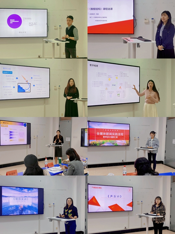 参赛教师通过15分钟的教学设计创新报告和现场说课展示进行角逐。比赛过程中,教师们分别围绕课程概述、学情分析、教学设计、教学方法、教学过程、教学成效等要素进行汇报,专家对参赛教师进行了指导。