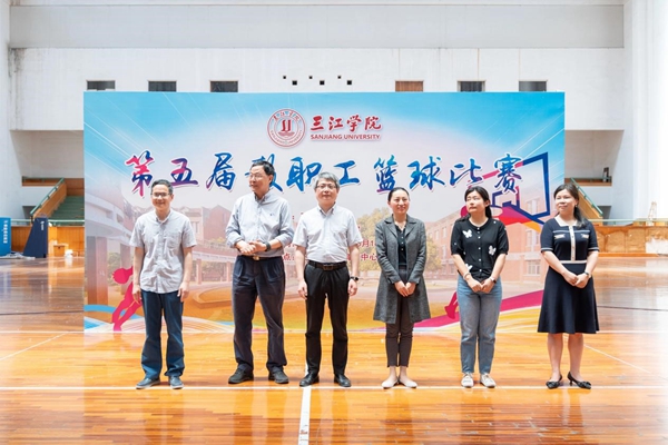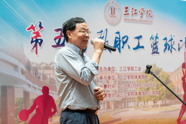 杨业琴致开闭幕辞,薛雨平宣布beat365英国官网网站第五届教职工篮球比赛开幕和闭幕并为首场揭幕赛开球。