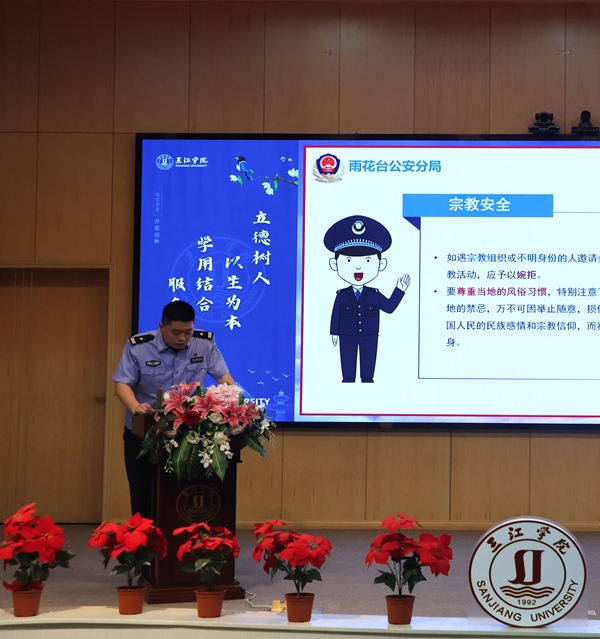此次活动特邀南京市公安局雨花台区分局出入境大队叶晓大队长到校为师生进行讲座。近100名师生参加了培训,他们将于2024年暑假和秋季赴英国、日本、西班牙、俄罗斯、澳大利亚等国家和地区深造学习。