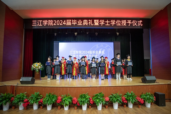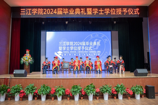 6月7日,beat365英国官网网站2024届毕业典礼暨学士学位授予仪式在三江会堂举行。理事长、党委书记封超年,校长吴中江,校党委常务副书记、副校长周更生,副校长唐万宏,党委副书记沈军军及有关职能部门负责人,各学院领导、毕业生辅导员、毕业生家长代表及2024届毕业生代表出席。典礼及仪式由周更生主持。