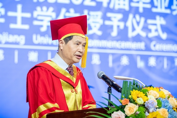 吴中江代表学校向顺利完成学业的6109名毕业生送上最衷心的祝贺和最美好的祝福。他对毕业生们说:毕业季,是见证收获的时节,时间见证成长,奋斗成就梦想,你们用四年的勤勉交出了如今优秀的毕业答卷,终于学有所成,可喜可贺;毕业季,是憧憬未来的时节,你们将走出校园,开启新的人生旅程,报效国家,服务社会,实现新的超越,请带上祝福与希望,去开创属于你们的全新的精彩世界;毕业季,是表达感恩的时节,请带着饮水思源的感恩之心,记住师长及同窗的关爱和奉献,他们将继续呵护你在人生大道上行稳致远;毕业季,是伤情离别的时节,离别同样美丽,因为它成就了我们美好的记忆,成为我们再次欢聚的序曲。
