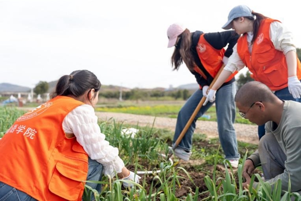 走进种植大棚锄地、浇水;帮助农户种植果蔬小苗、搭建鸡舍;深入茶园帮助采茶、制茶……连日来,外国语学院先后组织100余名学生来到江宁区云上田园生态农场开展助农实践活动,用青春之力奏响了助推乡村振兴的“大合唱”。