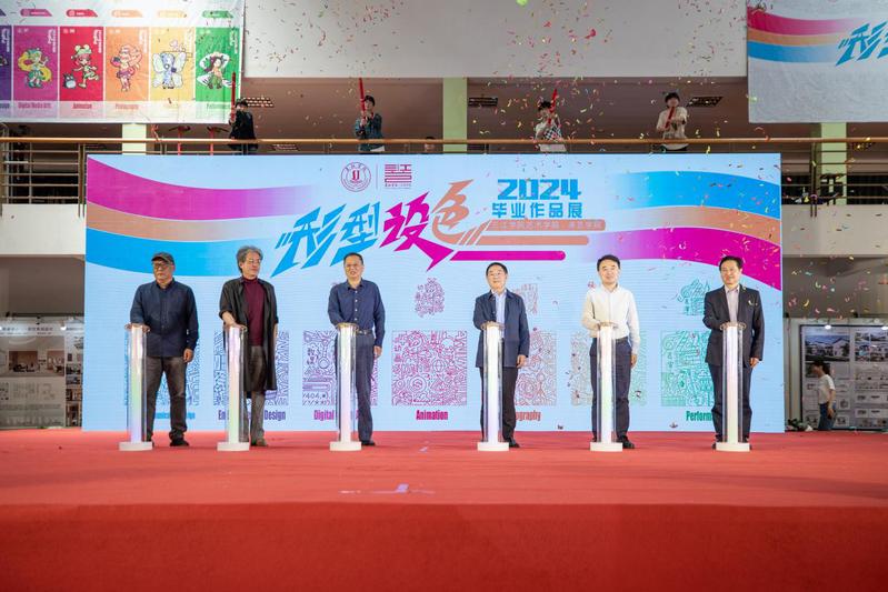 最后,在同学们的倒计时声中,校内外嘉宾代表共同按动开幕式启动按钮,全场礼花绽放,掌声如潮,本次作品展开幕仪式取得圆满成功。