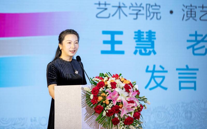 随后,优秀教师代表王慧发言,她指出,“形型设色”,是本次毕业设计展的主题,这四个字也凝聚了艺术的精髓,蕴含了学子们四年的汗水与智慧。形,是画面的骨架,又如同诗画中的意象,承载着情感的重量;型,是艺术的表现手法,也是创意的翅膀,赋予艺术飞翔的力量;设,蕴含着巧妙的构思,让作品充满创意与巧思;色,是色彩与情感的结合,使画面跃然生动。同学们用四年的青春,绘就了今日这五彩斑斓的艺术长卷。每一件作品都是你们心灵深处的呐喊,每一笔都见证了你们的成长与坚持。正如古人云:“千磨万击还坚劲,任尔东西南北风。”你们在艺术的道路上,经历了无数次的打磨与挑战,终于迎来了今日的绽放。愿同学们在艺术的道路上继续前行,不断创新,成为未来的艺术领军人物。