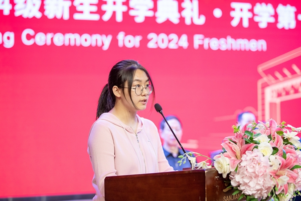 机械与电气工程学院自动化专业2024级陈欣怡同学作为新生代表发言