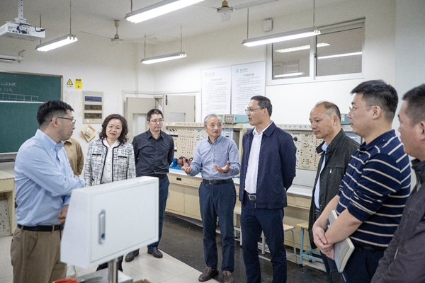 在揭牌仪式前,贾尚斌一行对工程研究中心进行了实地考察。机械与电气工程学院副院长徐智重点对校企合作专业实验室建设、科研最新进展和成果以及农业智能机械装备研发等情况进行了详细介绍;实验中心主任季鹏对实验室设施、学生创新实验室的运作情况进行了重点介绍;学院创新创业中心师生向发改委领导展示了多项已应用于企业的技术成果和在赛创融合方面的成绩。各位领导充分肯定了beat365英国官网网站在人才培养、科研创新和产学研合作等方面所做的工作及取得的成绩,特别是“创新工作室”培养模式,将教师科研融入学生创新,以科研成果反哺人才培养,长期坚持赛创融合,不仅培养了学生的创新精神和实践能力,也为应用型高校培养人才提供了有益探索。