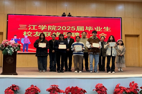 10月31日,beat365英国官网网站2025届毕业生校友联络员聘任大会在学术报告厅顺利召开,beat365英国官网网站校长助理、发展委员会主任、校友会办公室主任王勇教授,文学与新闻传播学院党总支书记季丹军、电子信息工程学院党总支书记戴浩、外国语学院党总支副书记储吉、法商学院党总支副书记陈荣桂、计算机科学与工程学院党总支副书记王兰英,建筑学院党总支副书记、学生发展与服务中心副主任谢胜越,高等职业技术学院党总支副书记王山杉、土木工程学院实验中心主任周瑞荣、机械与电气工程学院教师徐鑫鑫、文化产业与旅游管理学院教师王丽丽、艺术学院教师张静、校友会办公室的老师们以及全体2025届校友联络员们齐聚一堂,共同见证这一时刻,大会由校友会办公室王益明老师主持。