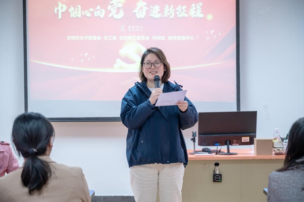 11月6日,女知识分子联谊会、校工会、校女职工委员会联合科研处、教师发展中心在5225智慧教室开展了“巾帼心向党 奋进新征程”之“双学双讲”活动。本次活动由科研处处长吴敏珏主持。