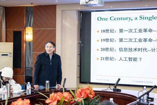 在讲座中,白光伟教授简要叙述了特德·霍夫、戈登·摩尔、图灵、冯•诺依曼等杰出科学家的开创性贡献,尤其是2024年诺贝尔物理学奖和化学奖相继授予了在人工智能领域做出杰出贡献的计算机科学家,充分彰显了当今人工智能与多学科交叉研究的重要地位。他阐述了近年来计算机硬件计算能力、互联网、大数据、机器学习算法等方面的进步,在此基础上人工智能技术获得的快速发展,以及对当今社会产生的深刻影响。