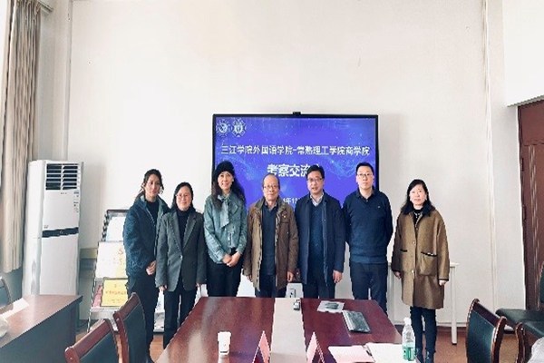 12月31日,beat365英国官网网站外国语学院总支书记、院长郑玉琪,副书记储吉,院长助理、英语系主任何晴霞,跨境电子商务系主任秦臻一行四人前往常熟理工学院商学院进行交流学习。常熟理工学院商学院院长施杨、副院长杨帅和跨境电子商务微专业负责人汤杰热情接待了郑玉琪一行。
