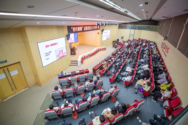 南京医科大学第一附属医院心内科行政主任孔祥清教授以《保持一颗健康的心》为题开启了“相约健康”直播讲堂(2025年第一期)。孔祥清围绕心血管病、高血压、冠心病、糖尿病的病因和危害、预防和治疗,以及如何解读体检报告等内容作了科学解读。他展望了降脂药物的发展趋势,并倡导“早发现、早诊断、早治疗”的健康生活理念和“适宜心理、适当膳食、适量运动、适度红酒”的健康生活方式。直播讲堂由孙剑主持。与会专家、学校工会委员、工会组长、教职工代表在学术报告厅聆听讲座。