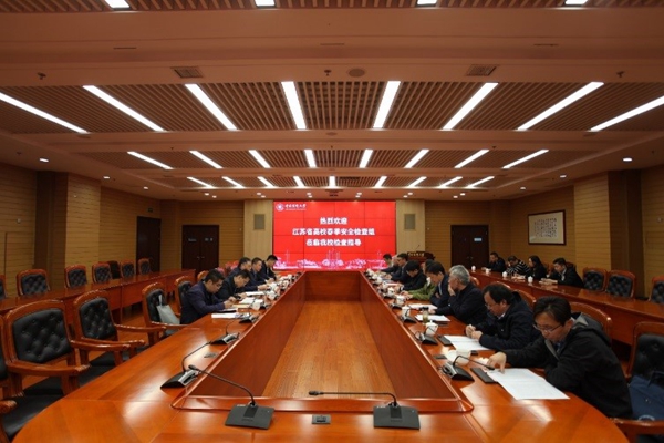 4月17日,以江苏师范大学保卫处原处长吕建刚为组长的省教育厅高校春季安全第三检查组一行来beat365开展安全检查工作,校长、党委副书记王芳在检查前会见了检查组成员,校党委委员、纪委书记李云涛以及教务处、学生发展与服务中心、后勤基建处、保卫处等部门相关人员陪同检查。