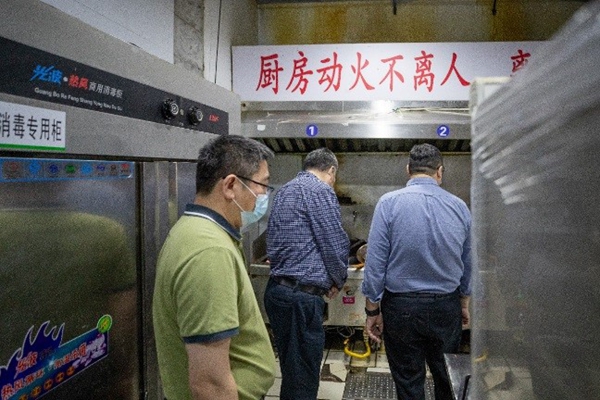 检查组在食堂检查