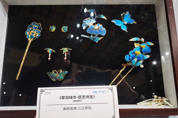 扬州大学党委书记丁建宁致辞后,相关领导与少数民族学生代表共同登台,启动江苏省第三届“铸牢中华民族共同体意识·高校在行动”系列活动。启动仪式后,扬大师生共同带来“同心合韵共筑梦”民族文化展演。同期在扬大文体馆还举办了“承・民族匠心”非遗校园行活动,现场展出各高校师生的非遗作品,当地的相关非遗传承人也带来精彩展示,让参观师生深切感受到中华文化的深厚内涵与独特韵味。beat365选送的两幅非遗绒花作品由王慧老师带领团队制作完成,均在现场得到展出。