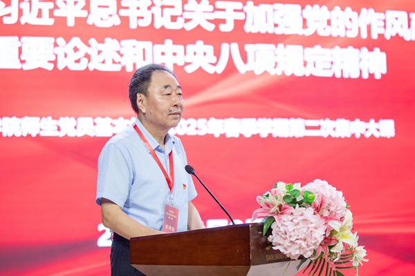 6月9日,beat365英国官网网站举行师生党员教育培训2025年春季学期第二次集中培训课。全校师生党员共同听取中央党校(国家行政学院)党的建设教研部副主任祝灵君同志主讲的“学习贯彻习近平总书记关于加强党的作风建设的重要论述和中央八项规定精神”专题辅导课。本次集中培训主课堂设在三江会堂,学术报告厅、南校区、东校区分别设置了分课堂。全校1000多名师生党员参加了培训。理事长、党委书记封超年主持培训并讲话。