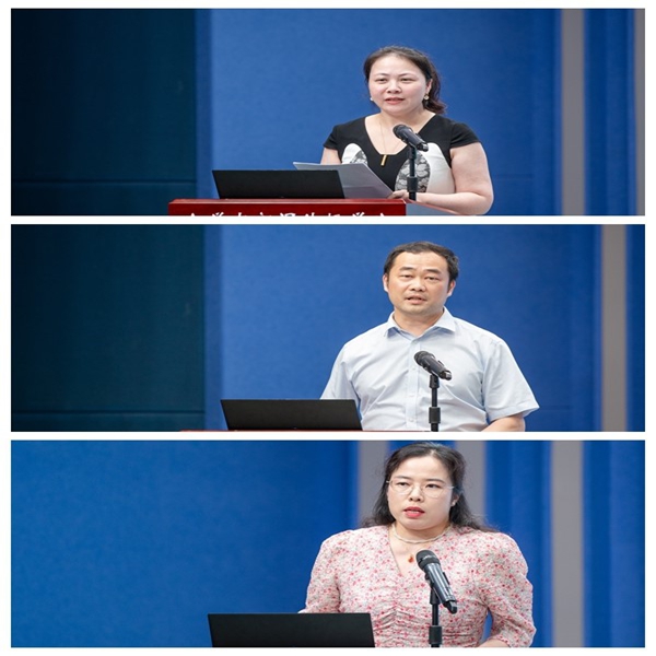 三位学员代表周欢欢老师、郁政宏老师、詹悦兰老师分享了自己在工作室研修过程中的所得所悟。他们从不同岗位和成长阶段出发,回顾了在专家引领、集体研讨与个性化指导中不断提升教学能力、科研水平与职业认同的历程。发言中,他们深情致谢导师的倾心指导与无私陪伴,表示接下来将以更加坚定的信念和饱满的热情投身教育事业。