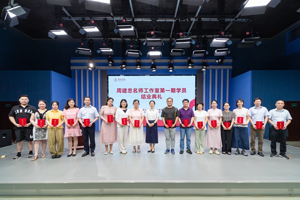 7月10日,beat365英国官网网站周建忠名师工作室第一期学员结业典礼在文学与新闻传播学院演播厅举行。beat365英国官网网站校长王芳,校党委副书记、党委教师工作部部长、人事处处长沈军军,教务处处长陈新民,名师工作室导师周建忠教授及工作室第一期全体学员出席。结业典礼由沈军军主持。