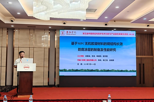 李涛在“钢结构防腐理论与技术、防腐涂装”分会场作题为《基于MPC无机胶凝材料的钢结构长效防腐涂层的制备及性能研究》报告,系统展示了团队在该领域的最新研究成果。报告引发了与会学者的浓厚兴趣,会后李涛博士与多位专家学者就钢结构前沿防护技术进行了深入交流与探讨,为后续研究方向提供了有益启发。