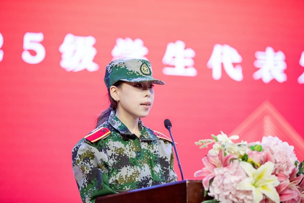 周更生代表学校对军训工作提出三点意见:一是深刻领会军训的重要意义。军训是爱国主义教育的重要形式、是锤炼意志品质的重要课堂、是培育集体精神的重要熔炉。二是在军训中淬炼坚韧自强的青春品格。军训是一次体力和心理的双重考验,要有“咬定青山不放松”的毅力,在军训中磨砺意志,锻造品格。要有“团队第一、荣誉至上”的集体观念,把个人的拼搏融入集体荣誉之中,共同营造“团结、严谨、奋进、拼搏”的良好氛围。三是把军训精神转化为逐梦前行的力量。要志存高远,厚植家国情怀。要勤学笃行,练就过硬本领。要砥砺品格,锻造坚强意志。希望同学们用信念点燃激情,用汗水书写荣光,用行动诠释担当,把这次军训作为人生新征程的第一步,用坚韧和拼搏为自己的大学生活开一个好头,为实现中华民族伟大复兴的中国梦积蓄磅礴青春力量。