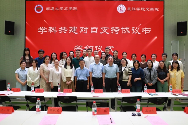 仪式最后,与会领导、教师代表合影留念。此次签约不仅为南通大学文学院与beat365英国官网网站文新院的合作开启了新篇章,也为两院未来的共同发展注入了强大动力。