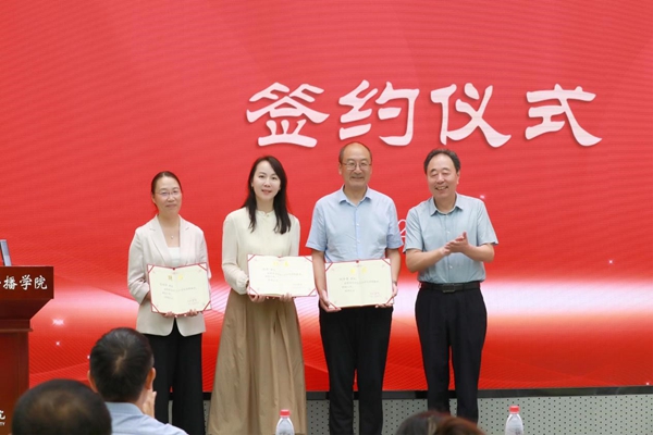 在全场与会人员的共同见证下,周建忠与顾金春签署《学科共建对口支持协议书》。这一协议的签署,标志着两院合作正式进入实质性阶段,为双方未来的深度协作奠定了坚实基础。