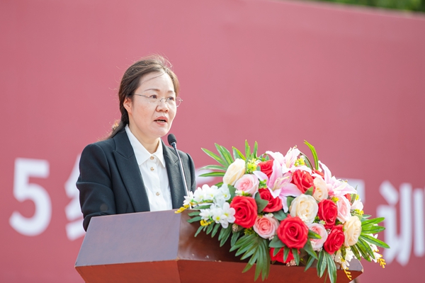 王芳代表学校向来自全国各地的4500余名2025级新同学表示衷心祝贺和热烈欢迎,并以《拥抱新时代 让青春绽放绚丽之花》为题讲话。