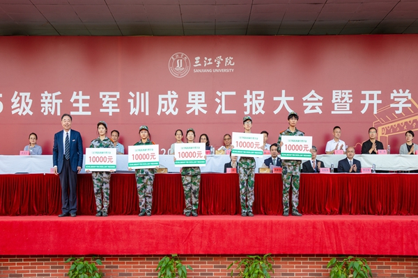 封超年代表学校向承训部队赠送锦旗,并为2025级新生代表颁发优秀新生奖学金。