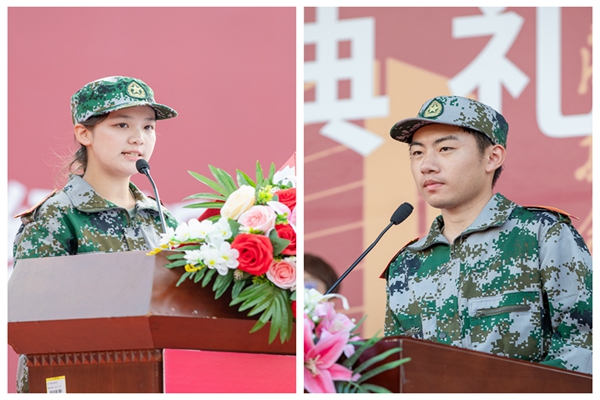 娄蕊奕同学在发言中表示,军训是青春时光中最宝贵的财富,记录了坚持的历程,领悟了纪律的重要,培养了团队的意识,为未来的发展奠定坚实基础。苏国瑞同学表示,希望同学们以“求知若渴”之心,夯实学业根基;以“敢为人先”之勇,拓展成长边界;以“守望相助”之情,共建温暖集体,并祝愿同学们脚踏实地,笃行不怠,以青春为笔,书写灿烂篇章。