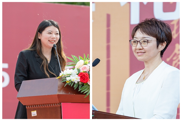 法商学院教师唐莹、机械与电气工程学院教师陈海霞分别作为教师代表发言