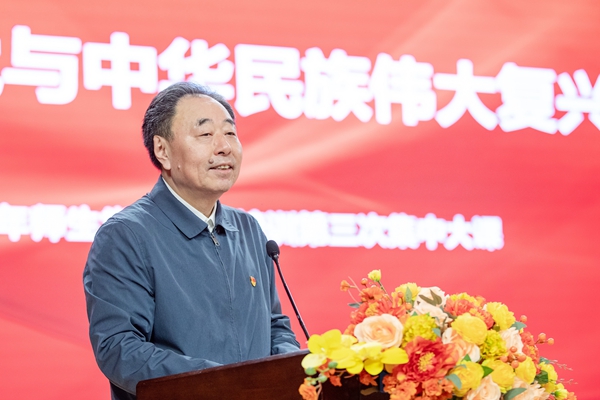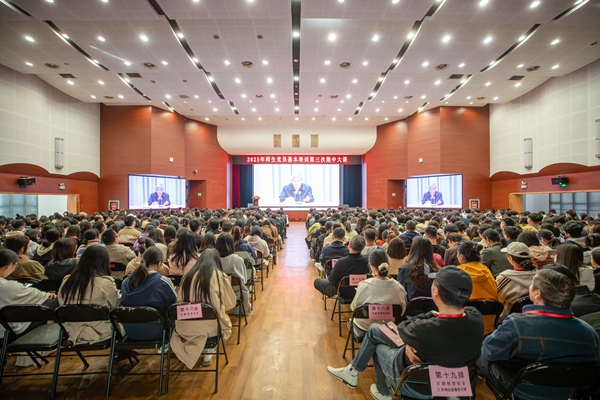 10月24日,beat365举行2025年师生党员基本培训第三次集中培训课。全校党员集中收看由中央党校(国家行政学院)分管日常工作的副校长(副院长)谢春涛以“中国共产党与中华民族伟大复兴”为题作的专题报告视频。本次集中培训主课堂设在三江会堂,主校区学术报告厅、南校区、东校区分别设置了分课堂。全校近1000名党员参加了集中培训。理事长、党委书记封超年主持培训并讲话。