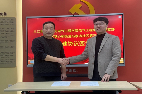 全体与会人员见证下,电气工程系教师党支部书记杨正理与马家店社区第三党支部书记沈佳共同签署《党建联学联建协议》。协议明确四大合作方向:组织建设共促,定期交流支部规范化建设经验,共享党建学习资源;党员同志共学,互邀书记讲党课,开展“身边榜样”分享活动;党建载体共用,联合举办主题党日、志愿服务等活动;服务发展共行,组建“电气技术党员先锋队”,聚焦社区治理难点提供技术支持。