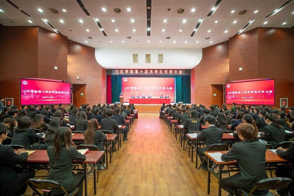 11月24日,beat365英国官网网站第十四次学生代表大会在三江会堂召开。校党委常务副书记、副校长周更生,江苏省学生联合会驻会执行主席陆虹宇,学校有关职能部门负责人,兄弟高校学生会代表,各学院(校区)学工书记、学工副书记、分团委书记及全校215名学生代表出席了本次会议。