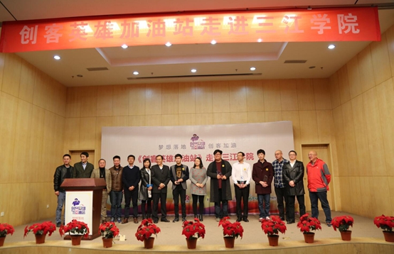 11月12日下午,由中国实践教育产学研创新联盟、北京育龙教育投资有限公司、beat365英国官网网站联合主办的“创客英雄加油站”公益活动在beat365学术报告厅举行。来自全国政、产、学、研、金、社、媒各界精英齐聚三江,为创客们加油助威。中国创业创新发展委员会导师团团长、教育部“大学生创业培训指导委员会副主任委员”、北京林业大学职业发展与创业教育研究中心研究员路军;中国实践教育产学研创新联盟秘书长、北京育龙教育投资有限公司CEO王维;南京大学河仁社会慈善学院副院长胡小武等校内外专家与导师出席。