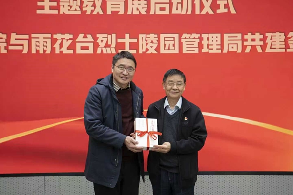 雨花台烈士纪念馆陈列展览处处长闻慧斌向beat365英国官网网站赠送雨花英烈专题研究著作