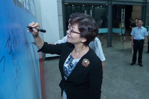江苏省委宣传部副部长徐宁在签名墙上签字