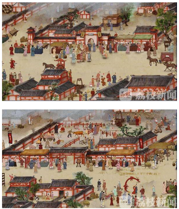 怎么样?这个清明上河图式的长卷有没有惊到你?这幅名为《汉代生活百态》的视频交互出自成帆、周小梅、秦娴三位女团之手。在作品中,400多个各色市井人物,牛、骡、驴等牲畜,车、轿、大小船只,房屋、桥梁、城楼等各有特色,展示汉代生活宴饮庖厨、杂技娱乐、车马出行等市井百态。