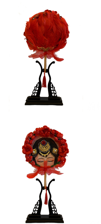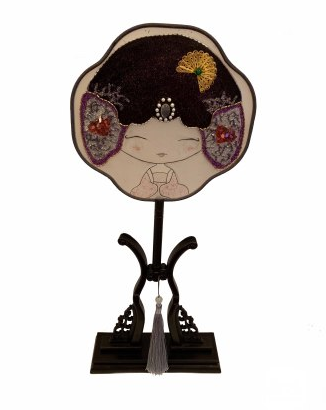 这个萌哒哒的团扇名叫《十二金钗史湘云》,运用了衍纸、法式刺绣、传统珠钗等元素,将中西方工艺合二为一,让人眼前一亮。