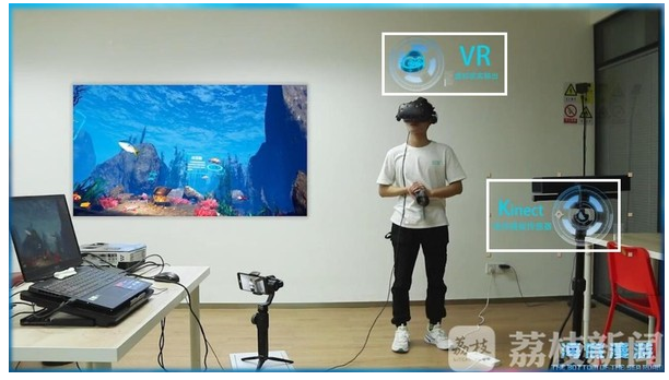 这个可以全景360度交互体验的VR作品叫海底漫游,出自于媒体艺术专业四大男团之手。在虚拟互动中,体验者会看到美丽奇特的海洋生物、海底地貌、沉没的海底古船和宝藏,身临其境感受倍棒。