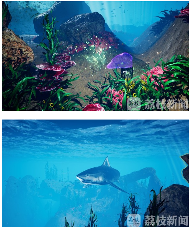 “团队主创”徐晗说:“我们主要偏向于视觉美感这种方向的展示,做了很多这种海里的鱼类,还有动态的UI(用户界面),可能在我们用户体验的时候,会给他一个美感,比较好。”
