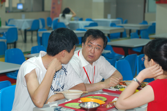 评估专家组副组长崔智林教授与学生一起用餐并交谈