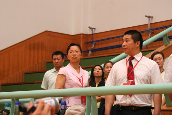 评估专家组秘书付红桥教授、张虹教授参观体育馆室内篮球场