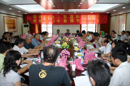 叶俊副校长致辞说,教师节是我们教师自己的节日。在此先预祝大家教师节快乐!教师座谈会每年都会召开,每年的形式和对象都有所不同。去年参会的主要对象是新进教职工,今年我们已经提前召开了新进教职工会议。今年的新进教师是历年来人数最多、素质最好的,其中硕士生就有50余位,有不少还是从英国、澳大利亚等国学成归来的教师,他们充实了我们的师资队伍,这是十分可喜的现象。今年的教师座谈会,我们主要围绕“学习胡锦涛主席在全国优秀教师代表座谈会上的讲话”展开。接着,叶俊副校长带领大家共同学习了《胡锦涛主席在全国优秀教师代表座谈会上的讲话》,重点学习了胡锦涛主席对全国广大教师的四点希望。