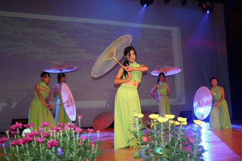9月28日晚上6点30分,主题为“新的血液 新的梦想”的计算机系迎新生庆国庆文艺晚会在三江会堂举行。副校长、计算机系主任、软件学院院长王芝庆、以及计算机系、软件学院的其他领导王成均、佟振明、叶传标出席并在前面就坐。文艺节目开始前的入学教育分五项内容,由佟振明副主任主持。王芝庆副校长就专业教育进行了生动而亲切的讲话,王成均副主任宣读了计算机系英语四六级考试成绩表彰名单。教师代表、老同学代表、新生代表依次发言。随后,舞台的帷幕徐徐拉开,学校大学生艺术团的劲舞《ten minutes》把会场气氛顿时导入演出氛围。晚会分三个部分——今天、明天、后天,三副对联把整个晚会很好地串联:今天——迎新生笑逐颜开喜相逢,庆国庆百花齐放乐开怀;明天——看今朝莘莘学子,盼明日济济人才;后天——山美水美花美草美校园处处堪称美,天新地新人新事新师生个个喜迎新。这些对联分别成为每场设计独到、典雅的舞台背景上的文字主题,让人感受到组织者的匠心独到。民族舞《家乡美》清灵柔美,动漫表演《COSPLAY》滑稽搞怪,古筝演奏《雪山春晓》音色流美……,计算机系的这台晚会不止反映了计算机系师生的人才济济,还反映了一种和谐和凝聚。8点30分左右,晚会在大合唱《我们是一家人》中落幕,计算机系、软件学院的领导走上舞台亲切慰问演职同学,并与大家合影留念。