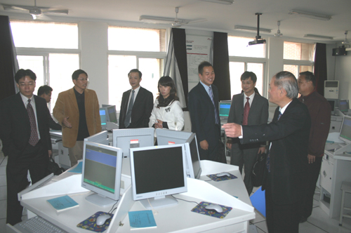 王芝庆副校长、计算机系王成均和叶传标副主任带领大家参观计算机系实验室