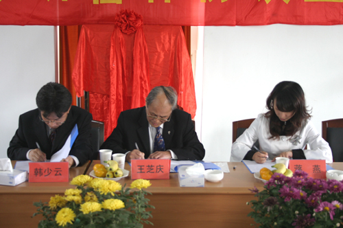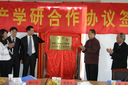 王芝庆副校长与网博总经理蒋燕及达内驻中国CEO韩少云联合签署协议