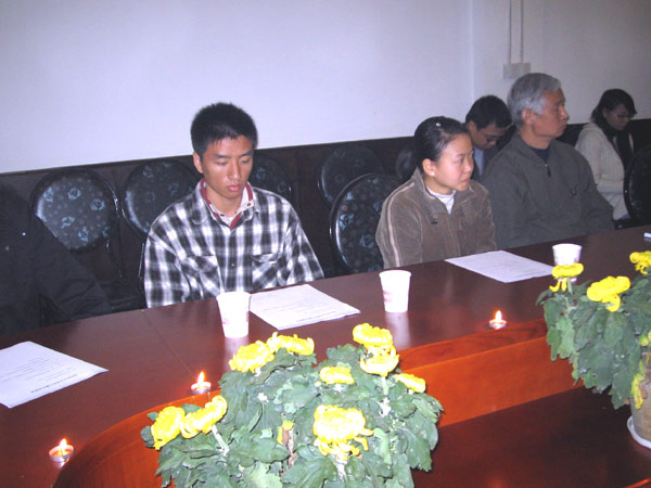 随着日语系二十多名同学庄严地点燃了“勿忘国耻”蜡烛和张纯如女士遗像前的洁白蜡烛,追思会正式开始。
